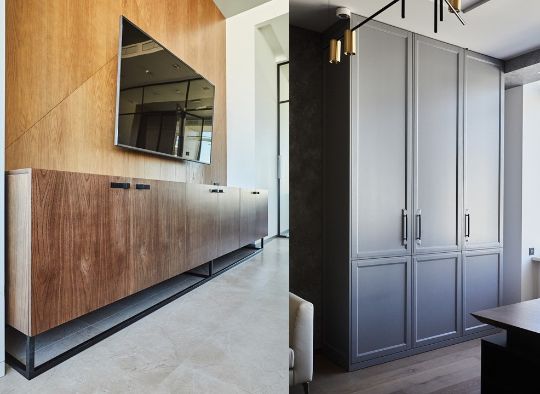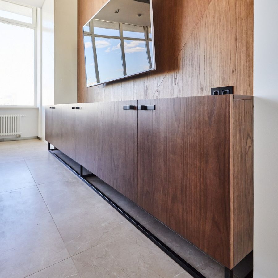 Шкафы, тумбы, стеллажи, столы руководителя, столы для переговорной. Премиум качество. Изготовление по индивидуальным размерам из выбранных материалов.